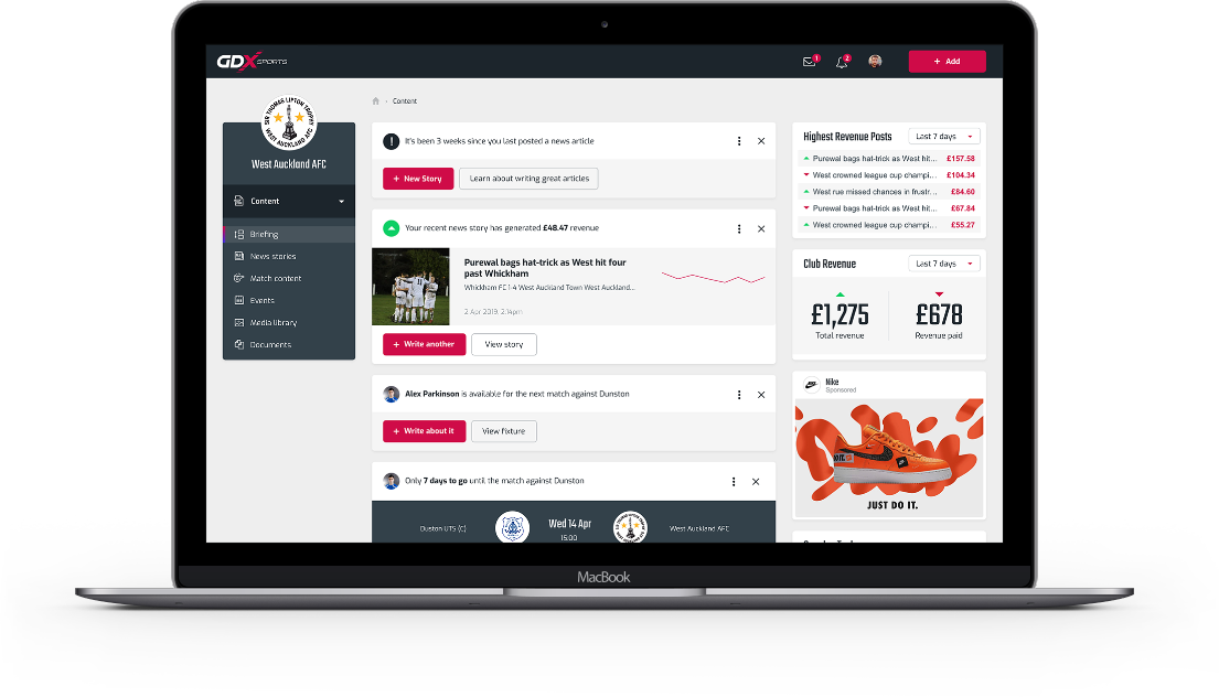 You post your content, we’ll place adverts, and you’ll reap the rewards - it really is that simple. The more content you post, the more advertising revenue you’ll receive from GDX sports to be put back into your club.